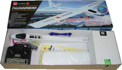 This great Glider comes with absolutely everything you need to fly - a total complete package that includes a 4Ch Radio Transmitter and receiver. Although the model is a 3ch model a great feature is that the radio equipment is 4Ch which means you can use it with more advanced 4ch models in the future.