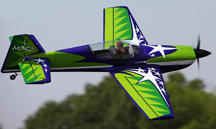 This is a striking blue version of the MX2, it has an amazing livery which will make it look awesome as you guide it through the skies. It is in fact a replica of the planes used by the Gary Ward Airshows team. See picture above for the real thing!