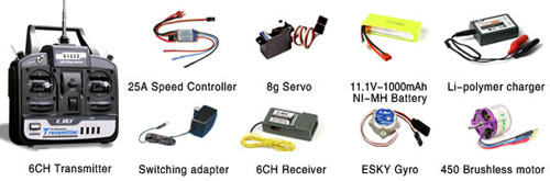 Specs: (1).Length:650mm (2).Height:230mm (3).Main Blade diameter:680mm (4).Tail Blades diameter :130mm (5).Motor gear:10T (6).Main driven gear:140T (7).Tail driven gear:110T (8).Driven gear rate:10:140/110:22 (9).weight:About 670g(Including 1800mAh,11.1V li-poly Battery) | Features: (1).CCPM System (2).Auto-rotation Stystem (3).Tail rotor Belt Drive System (4).High Inertial Main Blade (5).High Rigidity Iron Main Shaft (6).Shock Proof Iron Landing Skids (7).Full Ball Bearing & Metal Ball End (8).High rigidity alloy tail boom (9).High Strength Carbon Fibre Tail Stand |