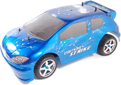 The Lightning Strike Pro is the ultimate radio controlled car with many hop ups included as standard. If you want a race ready model with all the main upgrades pre-installed then this is the perfect choice. You can't get a 1/10th rally car with a longer features list or that looks this good. We have taken a standard Lightning Strike and then crammed it with all the best optional parts which if purchased separately would cost a lot more. Also included is a rechargeable battery pack and charger for the electronics which gives more power and speed to the servos than using normal AA batteries.  Available with Blue or Purple shell