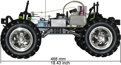 This is the off road Magic Wheel monster truck kit. This model is a massive 1:8 scale kit which is bulkier and bigger than the standard 1:10 scale ones. With its 2 speed automatic gearbox, huge rubber tyres and double shocks on each wheel, this monster can go anywhere.
