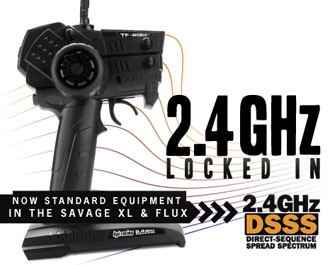 The reliable and sturdy HPI TF-20 2.4GHz radio controls the Savage