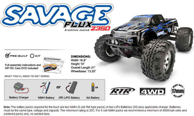 - :: HPI Savage Flux - 2350, 1:8 Electric RC Truck