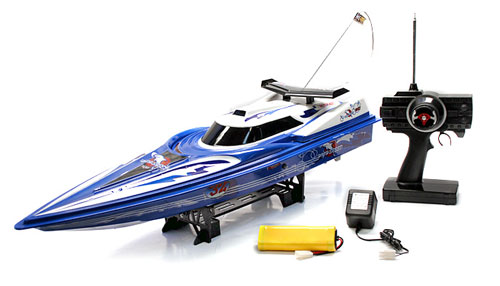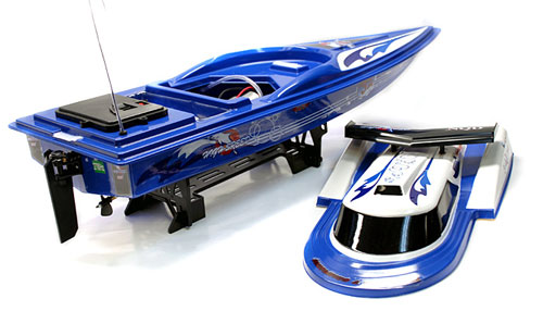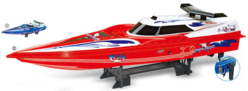 This is the new 32 Inch long Dolphin RTR Electric RC Racing Speed Boat. This superb looking boat is driven by a powerful 540 type racing motor, which for its size produces an incredible amount of power. It comes with professionally designed large torsion propeller which provide an immense amount of thrust.